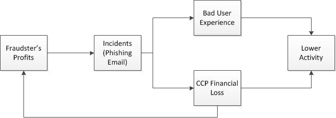 It's fairly straight forward, a phishing email is sent which leads to a bad user experience and financial loss to CCP in the form of work and reimbursements. That bad experience can leave a sour taste in a customer's mouth which will lead to lower activity (and less fun). The information obtained by the fraudster is then used to liquidate the user's assets and/or sell off the user's account information to be used for other bad activity, which is what spurs the additional phishing attacks in order to generate further profit for the bad guys.