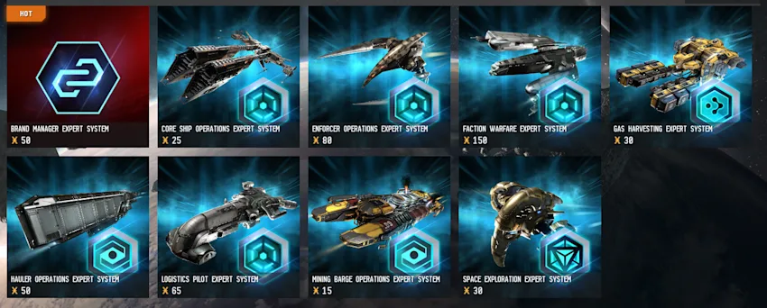 Expert Systems remain a NES-exclusive product (except for themed versions sold in Identity Packs on the EVE Store). They offer capsuleers temporary access to key skills and ship roles plus a skill plan to guide permanent training making them ideal for trying out new paths without a training commitment. Below is a short list of the Expert Systems we have tried so far: