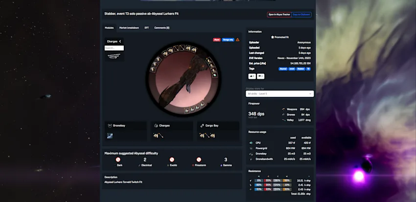Looking for fits? The Community Fittings have been updated with some tried-and-true performers from all races. If you want to really dive deep, however, EVE Workbench has you covered. There are fits which can be sorted by skill level, price point, Alpha or Omega status - you name it! Many fits also have guides along with them so you can know what you're heading into. This fit, popularized by Torvald Uruz and the Abyssal Lurkers community, excels at managing the challenging Disastrous Gamma (tier-3) sites