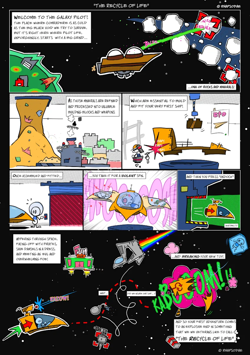 A Community Beat wouldn't be complete without some art! Luckily, reddit user Rhaps9000 made a neat comic dubbed "The Recycle of Life" to help our newbros to get a hang of Eve.