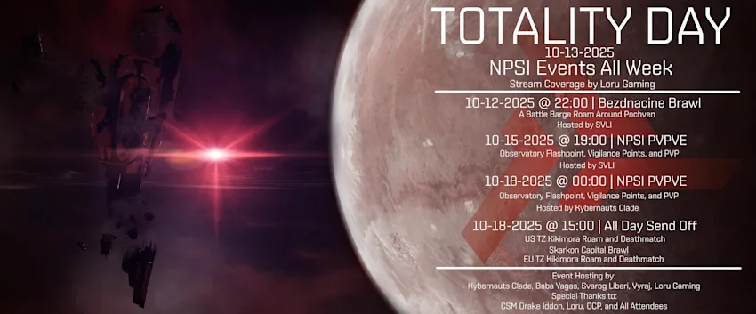 Every year on October 13 the Kybernaut community celebrates Totality Day - the anniversary of the conclusion to the long and bitter struggle during the Triglavian Invasion of YC122 which resulted in the creation of the Pochven region.