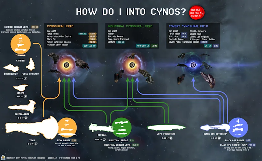 Or, more infographic visual examples for our visual learners from Qymm Phyton explaining which ships can activate what Cynos particular ships can use and jump to following this weeks major update: