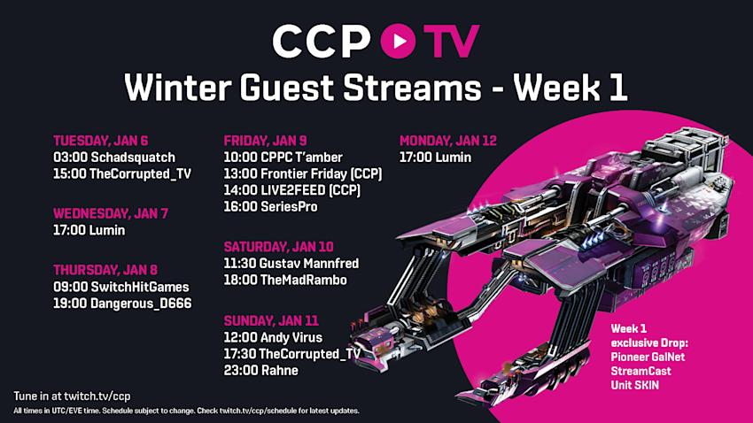 For the next four weeks through January and into February we will be running the Winter Guest Streams and once again we're hosting EVE partners on the official CCP Twitch channel, so make a warm mug of coacoa, settle in and enjoy some EVE Online content!