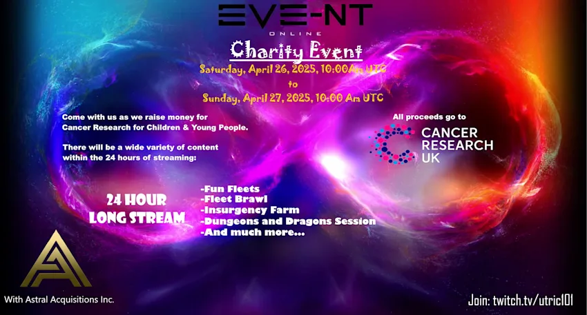 Another opportunity to support a good cause is just around the corner! Starting 26 April at 11:00 UTC, Utric101 and Astral Acquisitions will be hosting a 24-hour (!) charity stream in support of Cancer Research UK for Children & Young People. This will include a BattleHauler and BattleLogi yeet fleet, A Spectre Fleet brawl and a Zappy Skybreaker lowsec roam, among other activities.