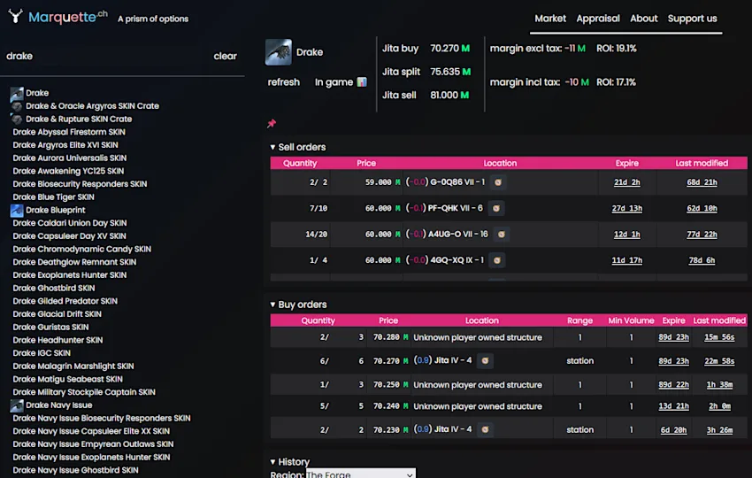 Marquette is a powerful tool that combines the features of similar apps, such as Janice or EVE Workbench, revolutionizing your trading experience. With Marquette, you can draft combined contracts for buying and hauling in-game items, always staying one step ahead of the market with real-time price calculations.