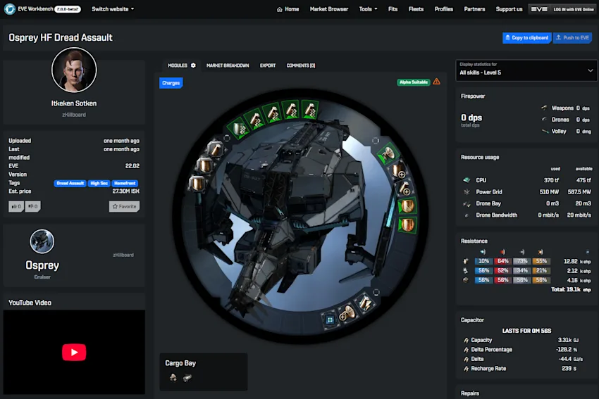 What's more, if you log into the site with your EVE SSO, once you find a fit you like you can push it straight to your saved fittings in the EVE client with the click of a button! EVE Workbench is also a great place to store fittings for yourself or your organization when you can't log in to EVE Online.