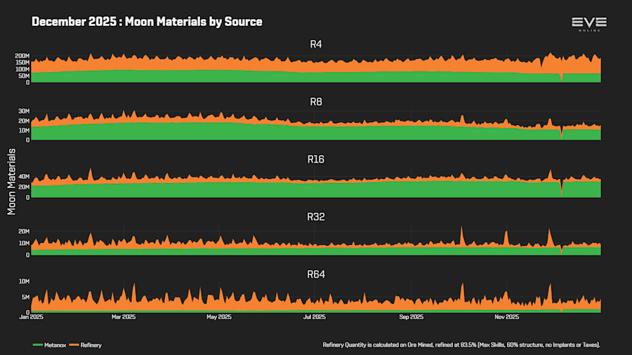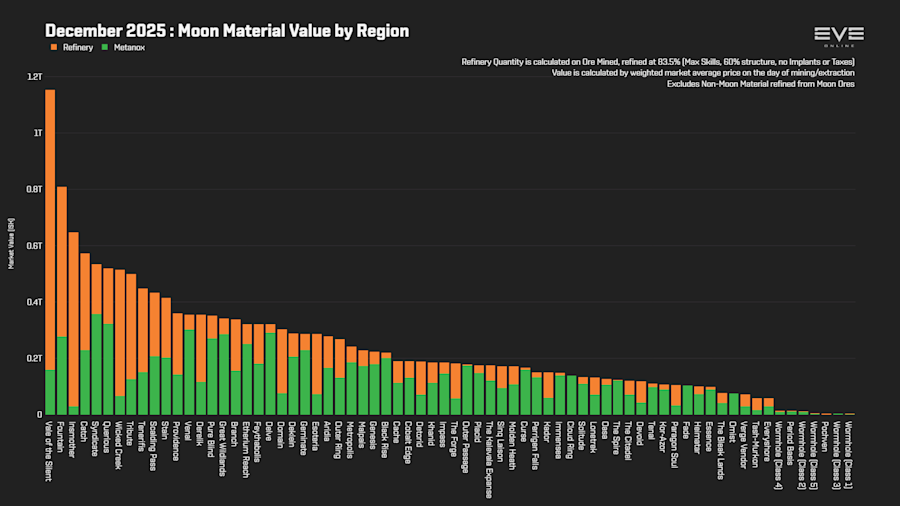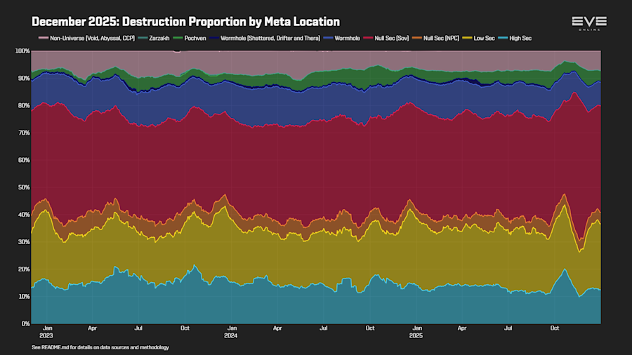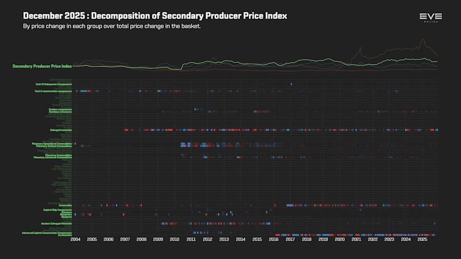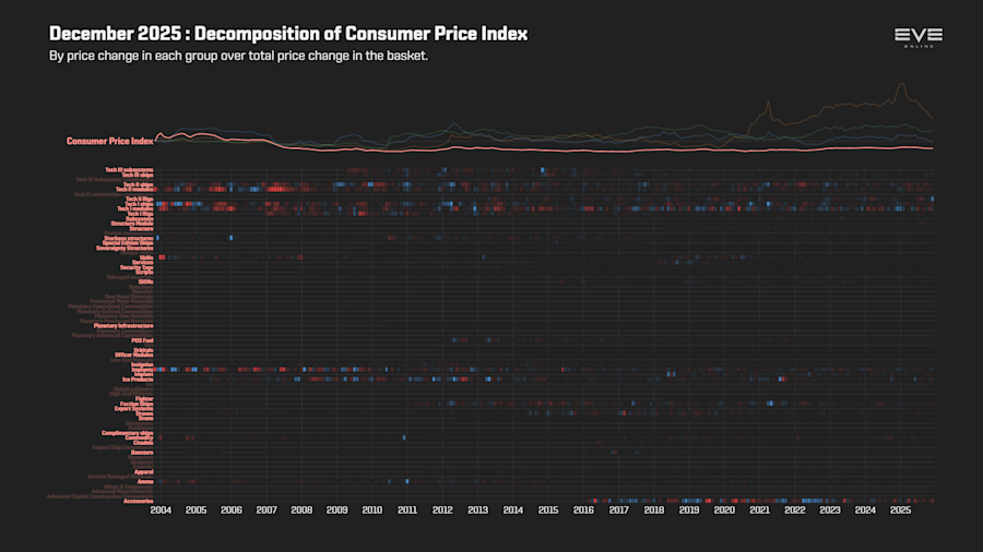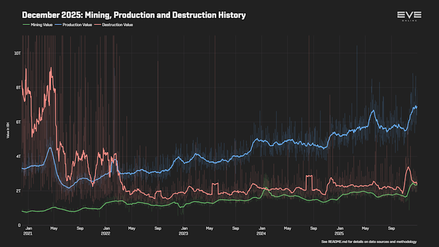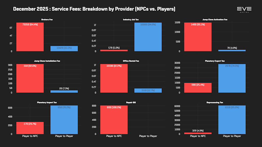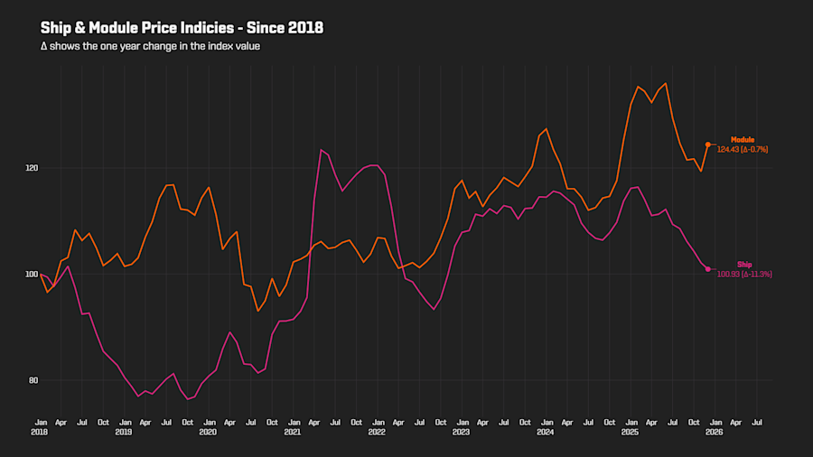 • Bounty Prizes ISK faucet has stabilized over December, while the Commodities ISK faucet has seen a ~20% growth.