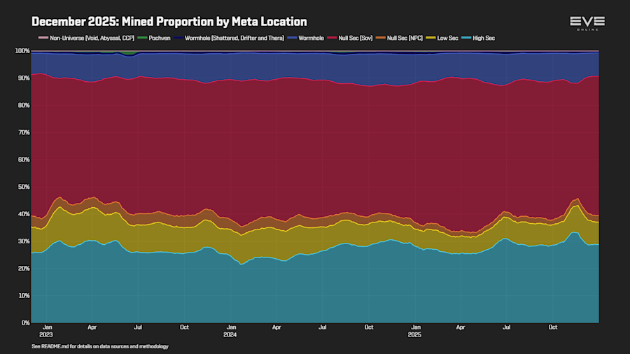 • Drop in High Sec Asteroid Mining value, and increase in High Sec Ice Value.