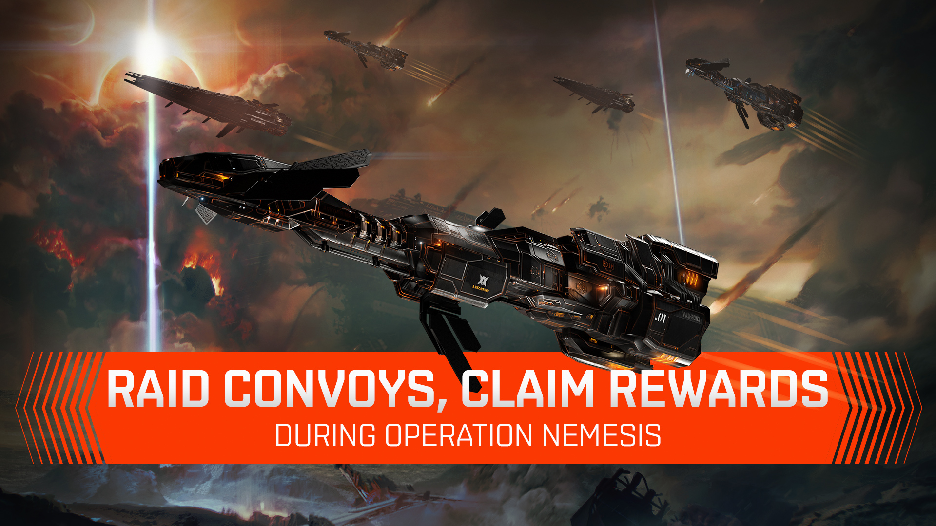 A: Operation Nemesis is a World Event playable in both EVE Online (the space above) and EVE Vanguard (the ground below). In EVE Vanguard, you are a warclone mercenary, recruited by the factions of New Eden and the secretive Deathless Circle to uncover advanced technology. But standing in your way is Mordu’s Legion, a formidable force determined to stop you. Your mission: disable Upwell defenses, push back Mordu’s Legion, and recover valuable secrets hidden across the combat zone. These secrets will reveal the location of high value convoys traveling through space. Capsuleers in EVE Online respond by intercepting and looting these convoys to recover additional intel. Complete expeditions for the factions of New Eden, uncover intel, and fuel the war machine